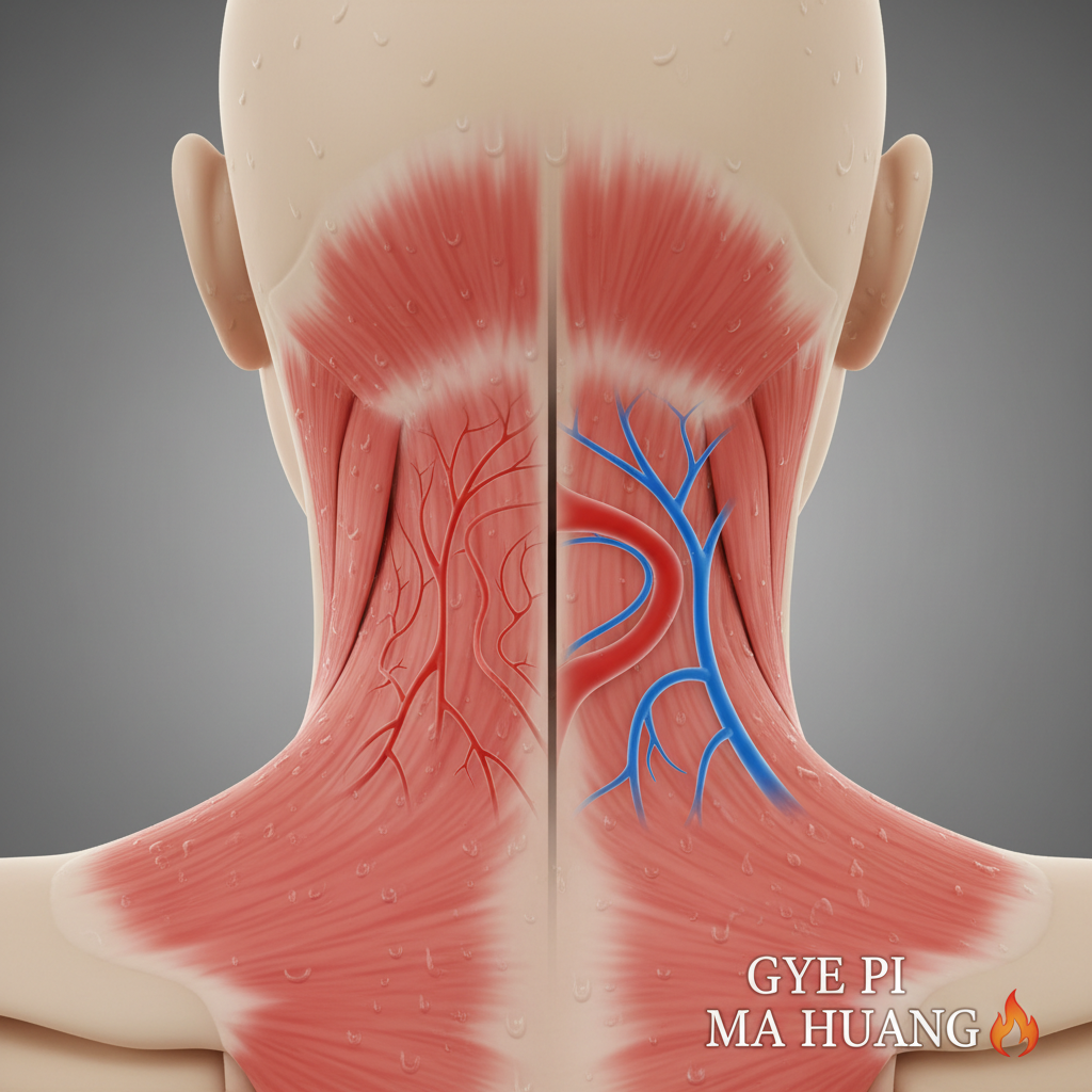 현대인들은 과도한 스마트폰 사용과 업무 스트레스로 인해 만성적인 '거북목'이나 승모근 통증을 달고 삽니다. 감기 몸살이 오면 이 증상은 더욱 심해져 온몸이 두들겨 맞은 듯 아프고, 특히 뒷목에서 등줄기까지 뻣뻣하게 굳어버리곤 합니다. 이때 갈근탕은 뭉친 근육에 수분을 공급하고 긴장을 풀어주는 '마사지 오일'과 같은 역할을 몸 안에서 수행합니다. 따라서 단순한 몸살뿐만 아니라, 낙침(자고 일어나서 목이 안 돌아가는 증상)이나 교통사고 후유증 같은 근육통에도 광범위하게 응용될 수 있는 전천후 처방이라 할 수 있습니다.