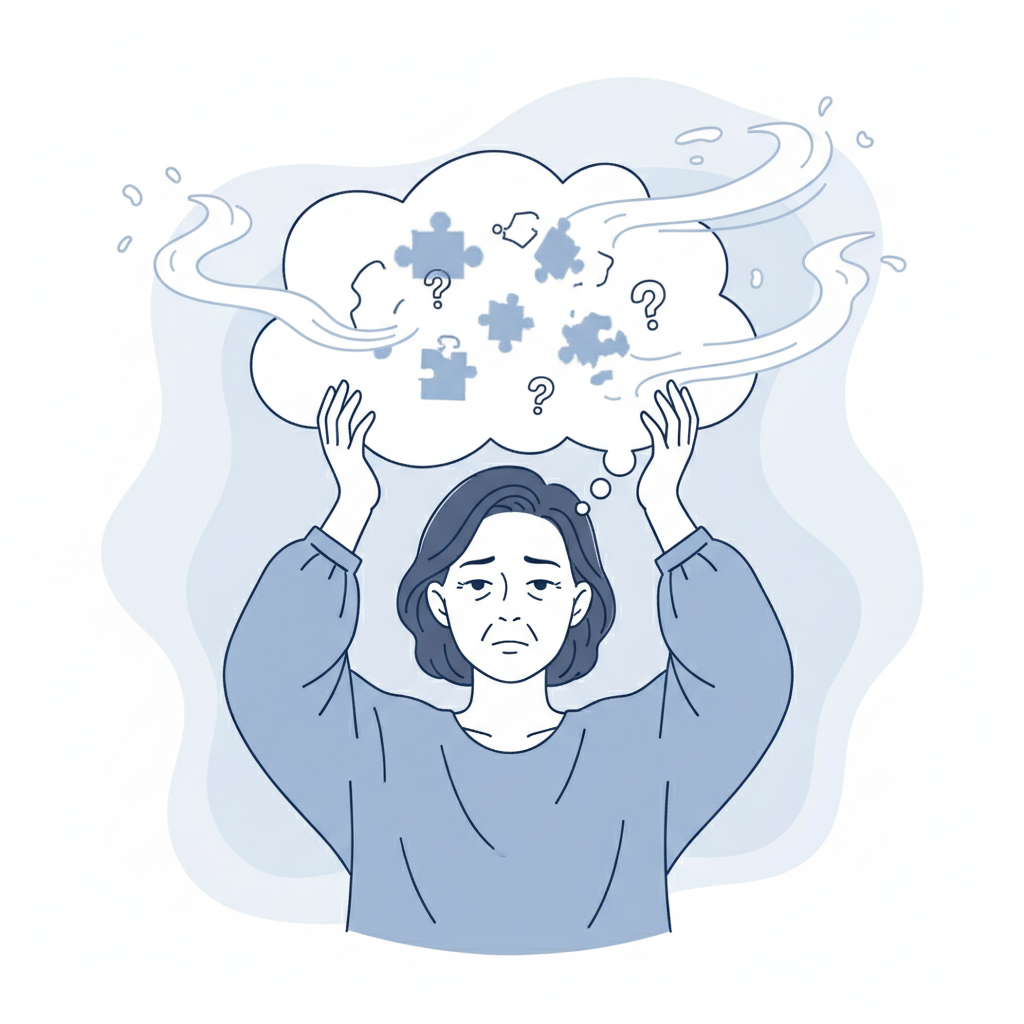 - 기억력 감퇴: 방금 하려던 말이 생각나지 않거나 물건 둔 곳을 깜빡깜빡합니다.