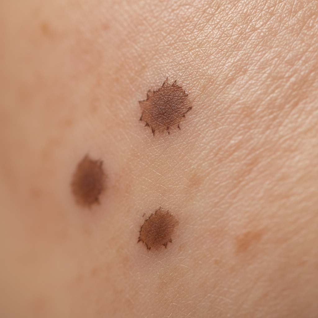 의학적 용어로 '지루각화증' 또는 '노인성 흑자'라고 불리는 검버섯은 피부 표피의 각질 형성 세포가 비정상적으로 증식하면서 생기는 양성 종양의 일종이에요. 기미나 주근깨와 헷갈리기 쉽지만, 기미가 넓게 퍼지는 색소 침착이라면 검버섯은 경계가 뚜렷하고 만졌을 때 약간 오돌토돌하게 튀어나와 있는 경우가 많답니다.