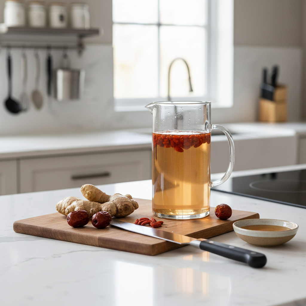 그렇다면 어떻게 먹어야 가장 효과적일까요? 가장 흔하고 안전한 방법은 차로 끓여 마시는 것입니다. 물 2L에 건조 구기자 30g 정도를 넣고 붉은색이 우러날 때까지 은근하게 끓여주면 됩니다. 이때 팁을 하나 드리자면, 구기자를 살짝 볶아서 사용하면 유효 성분의 추출률이 높아지고 구수한 맛도 배가됩니다.