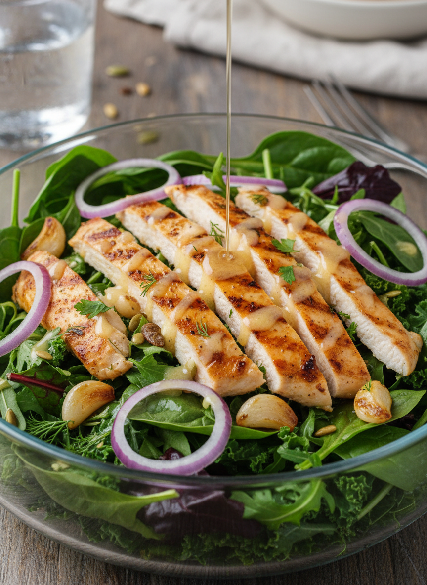 - 점심: 구운 마늘을 곁들인 닭가슴살 샐러드