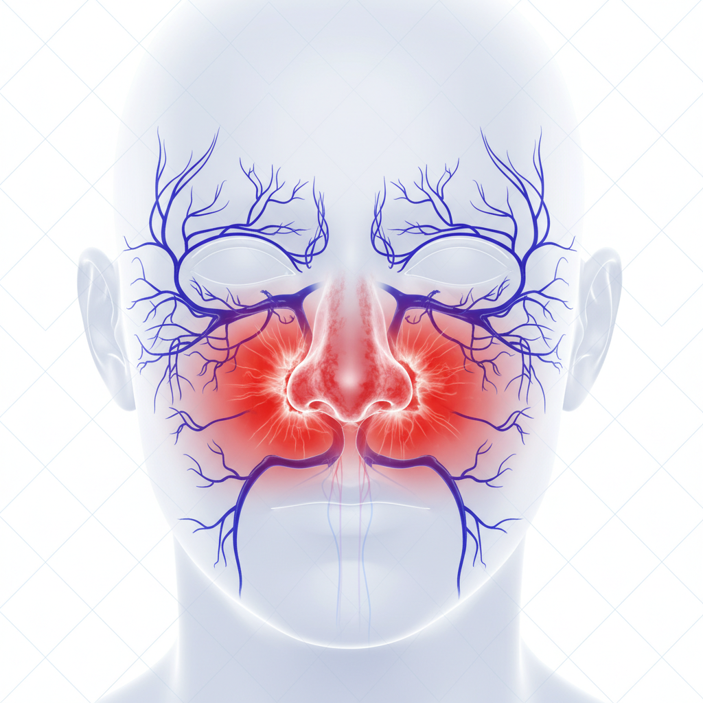 의외로 많은 분들이 놓치는 원인 중 하나가 바로 '비염'이에요. 알레르기 비염이나 축농증이 있으면 비강 내 혈액순환이 저하되고 정맥이 울혈됩니다. 코 주위와 눈 밑은 혈관이 촘촘하게 연결되어 있기 때문에, 코의 혈류가 막히면 눈 밑 혈관까지 부풀어 오르고 검붉은 색을 띠게 됩니다. 환절기만 되면 유독 눈 밑이 어두워지는 분들은 이 원인을 의심해 보셔야 해요.