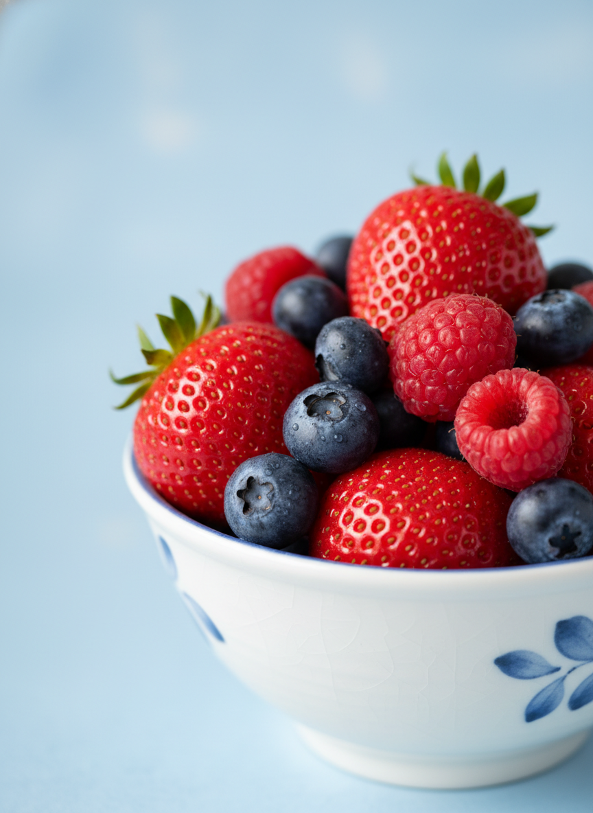 A: 아닙니다! 과일은 비타민, 미네랄, 섬유질이 풍부해서 건강에 매우 유익해요. 다만, 혈당 지수가 높은 과일은 피하고, 베리류나 사과처럼 GI가 낮은 과일을 적당량 섭취하는 것이 좋습니다. 과일 주스보다는 생과일 형태로 드시는 걸 추천해요. 섬유질이 포도당 흡수를 늦춰주기 때문이죠.