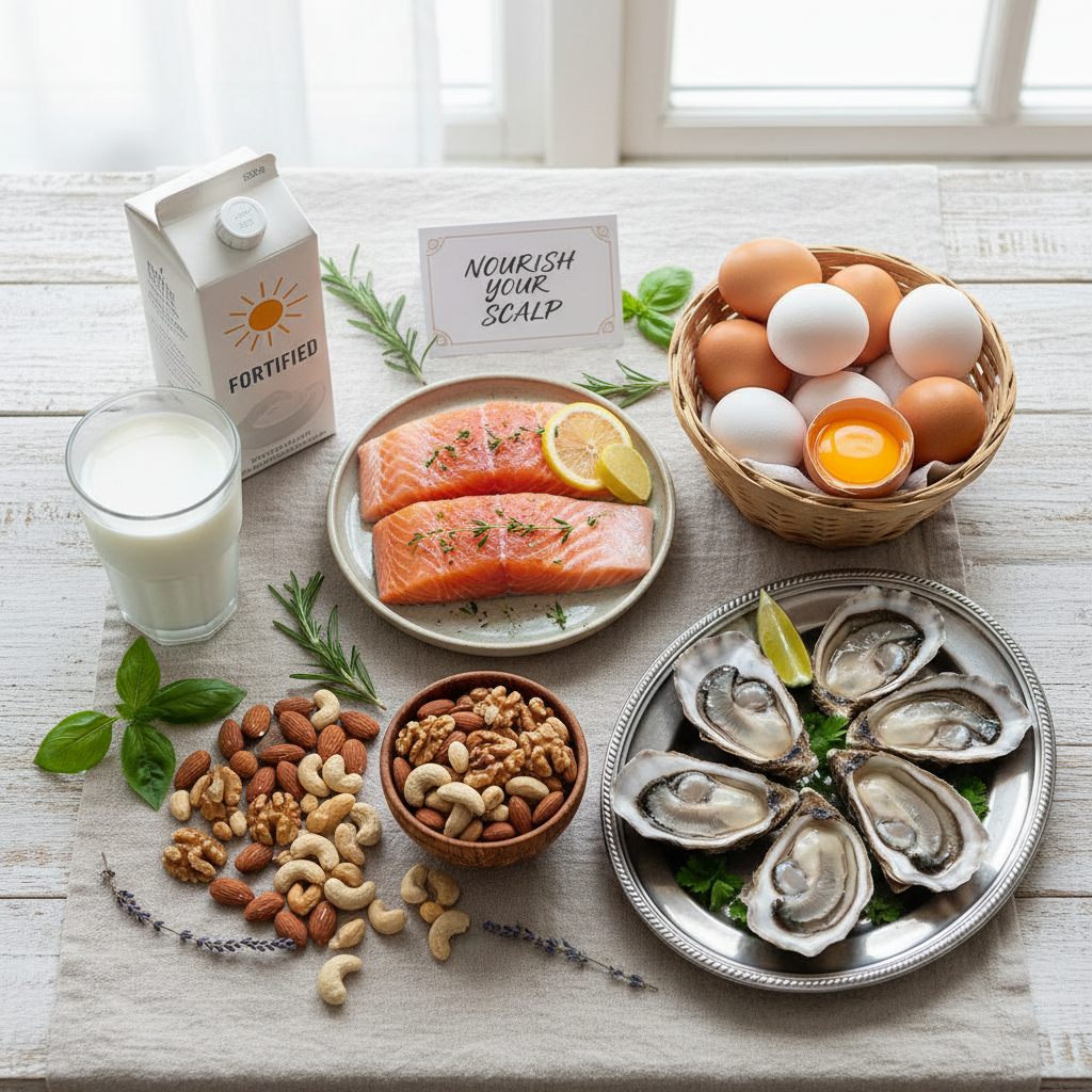 - 균형 잡힌 식단: 비타민, 미네랄, 단백질이 풍부한 음식을 섭취하세요. 특히 아연, 비오틴, 비타민 D 등은 두피와 모발 건강에 필수적입니다.