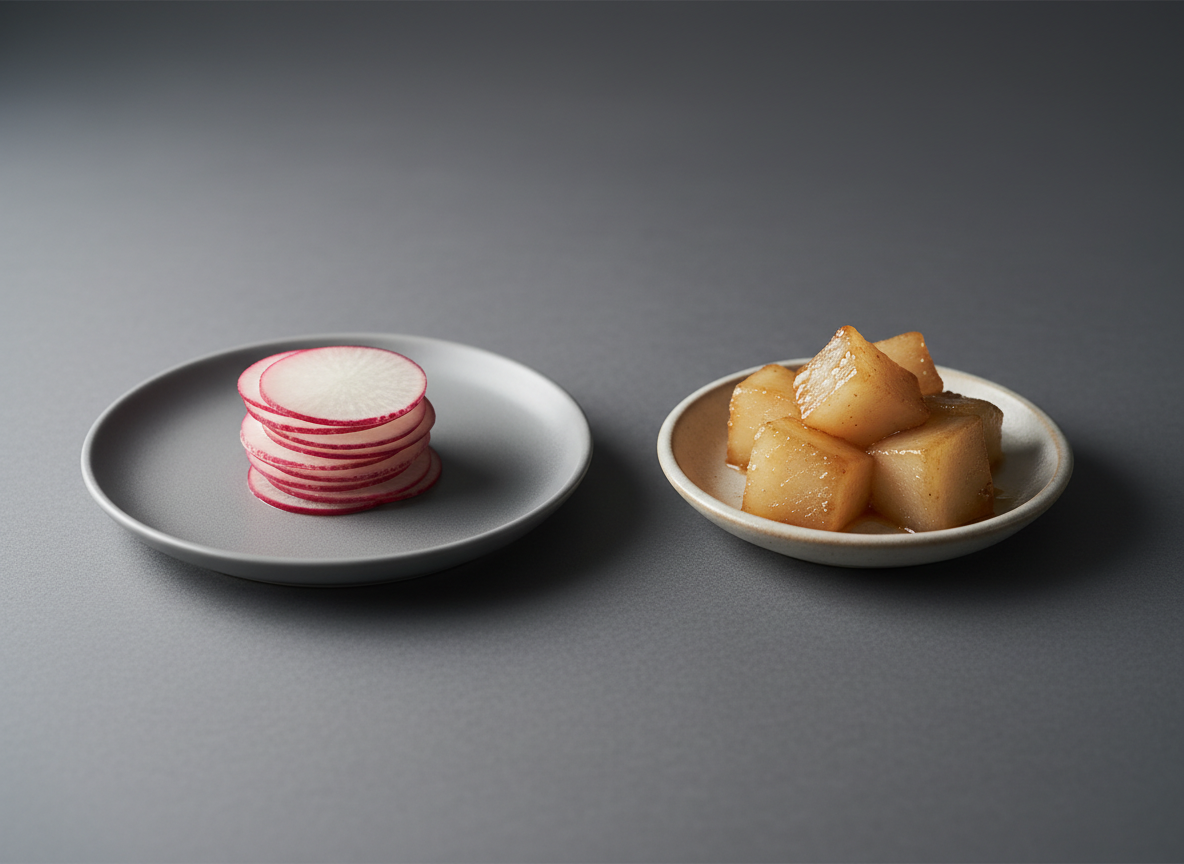 - 노화 방지 및 항산화: 비타민 C와 안토시아닌(빨간 무의 경우) 성분이 활성산소를 제거해 피부를 맑게 하고 세포 노화를 방지합니다.