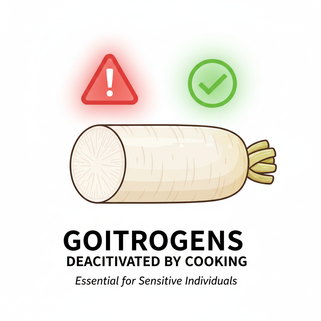 - 부작용: 생무는 갑상선 질환자에게 주의 필요(익히면 해결), 빈속에 과다 섭취 시 속쓰림 유발.