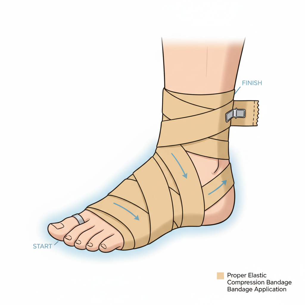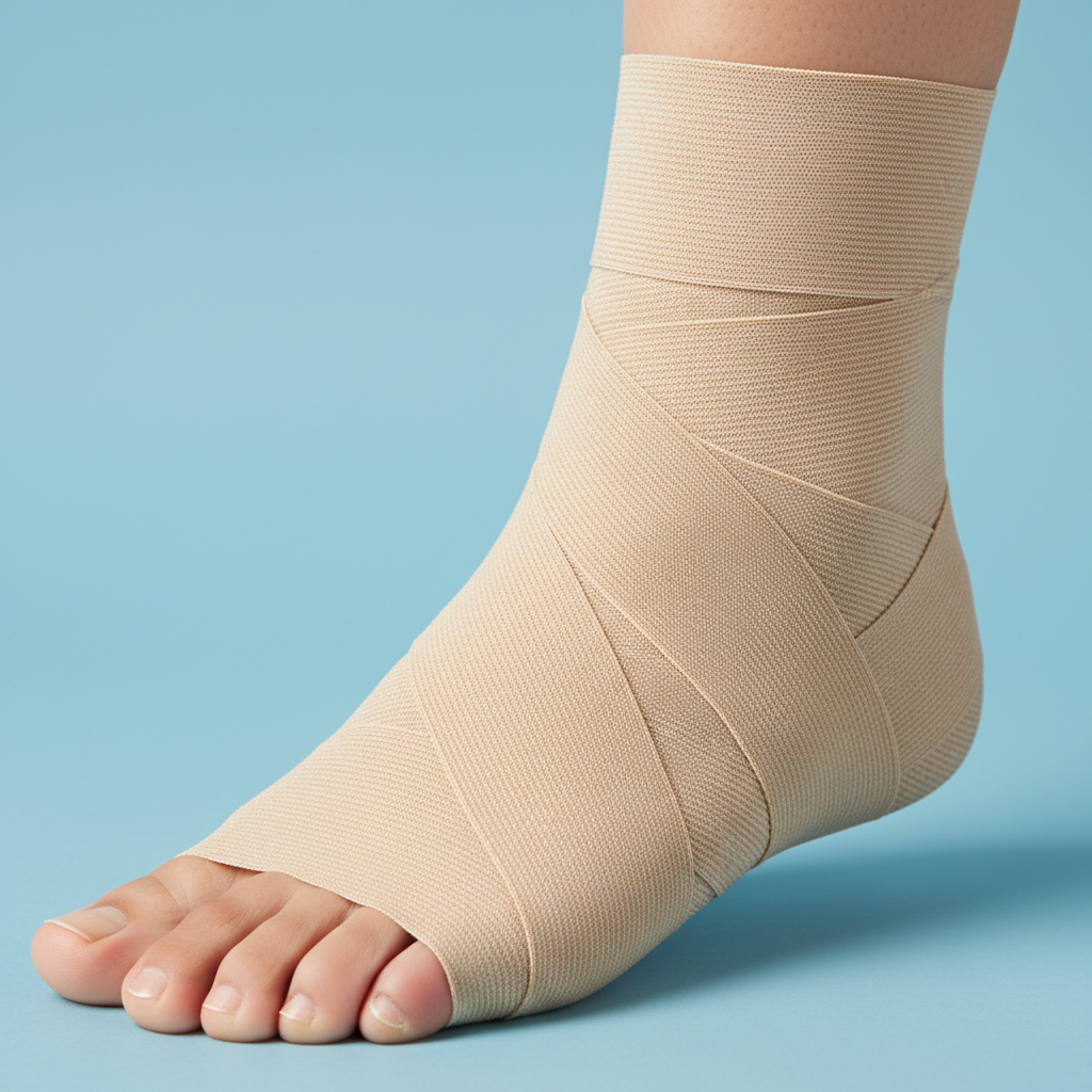 - C (Compression - 압박): 압박 붕대나 탄력 붕대로 발목을 가볍게 감싸주세요. 과도한 압박은 피해야 합니다.
