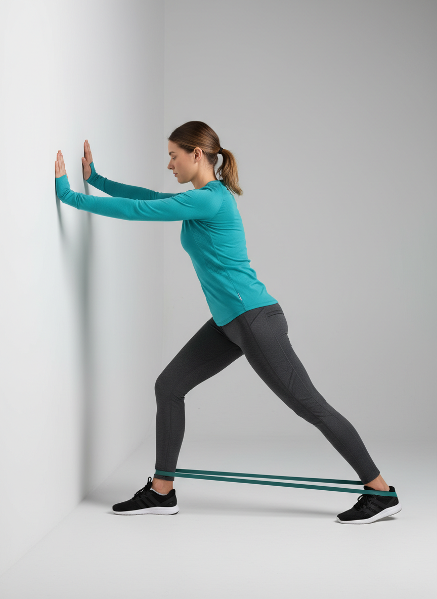 - 벽 밀기 스트레칭: 벽에 손 짚고 아픈 발 뒤로 빼고, 발뒤꿈치를 바닥에 붙여 종아리 근육 늘려주세요.
