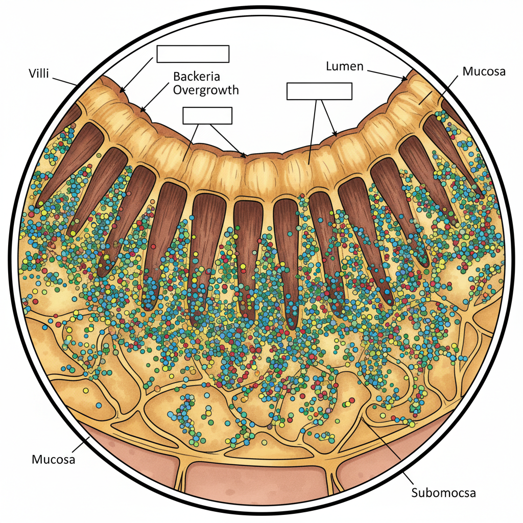 - 소장 내 세균 과다 증식 (SIBO): 소장에 세균이 너무 많아 가스가 심하게 발생하는 상태