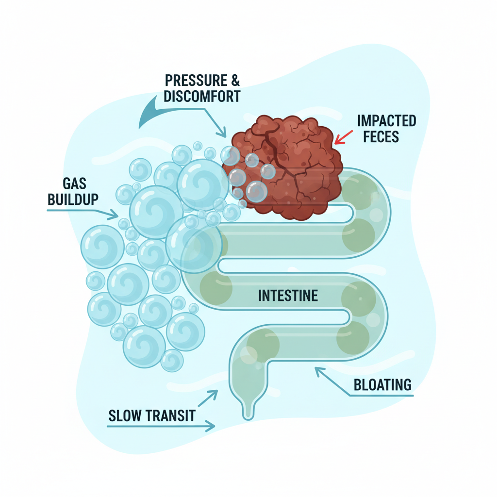 - 변비: 대변이 장에 오래 머물며 부패 가스를 지속적으로 방출