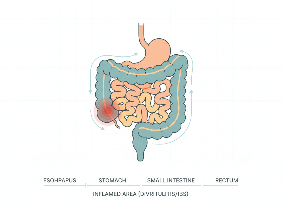 - 과민성 대장 증후군 (IBS): 불규칙한 식사나 스트레스로 배가 자주 아프고 설사, 변비가 반복될 때 의심해요.