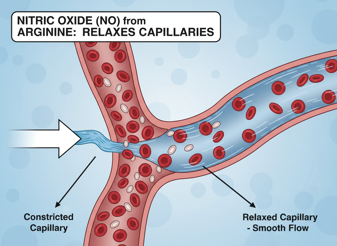 아르기닌이 우리 몸에 들어오면 '산화질소(NO)'라는 물질을 생성해 냅니다. 이 산화질소는 혈관 내벽을 부드럽게 이완시켜 혈관의 폭을 넓혀주는 기능을 합니다. 마치 2차선이었던 도로가 4차선으로 넓어지는 것과 같죠. 길이 넓어지니 혈액 흐름이 원활해지고, 신체 곳곳의 말초 혈관까지 산소와 영양분이 막힘없이 공급됩니다.