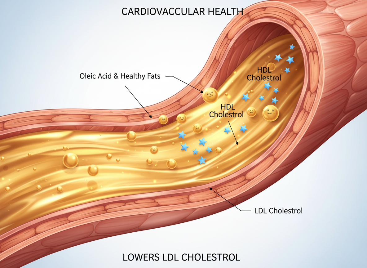 - 혈관 청소부: 올레산이 나쁜 콜레스테롤을 줄여줍니다.