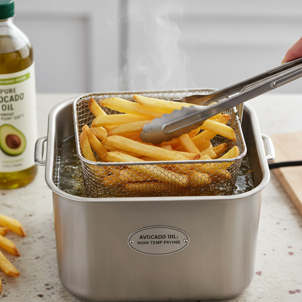 제가 아보카도 오일을 사랑하는 가장 큰 이유는 바로 높은 발연점 때문입니다. 올리브 오일은 발연점이 낮아 튀김 요리에 적합하지 않지만, 아보카도 오일은 약 **271도**까지 견딜 수 있습니다.