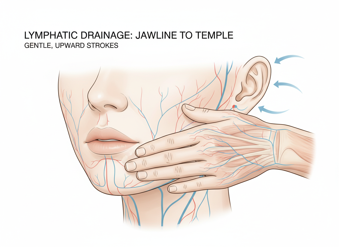 - 얼굴 마사지 및 림프 배농: 차가운 숟가락이나 마사지 도구를 이용해 림프절이 위치한 귀밑, 턱선, 목선을 따라 부드럽게 마사지해주면 체액 배출을 도울 수 있습니다.