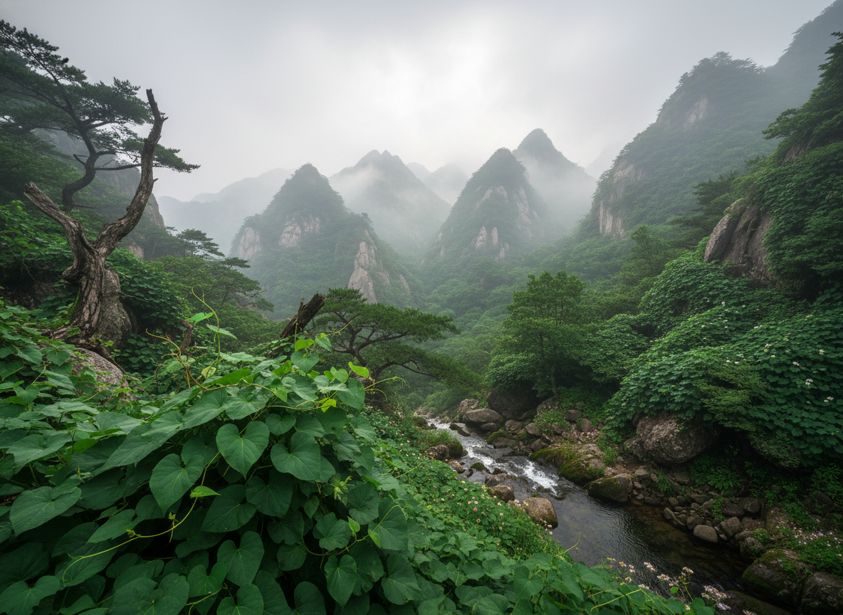 칡은 콩과에 속하는 덩굴식물로, 그 강인한 생명력 덕분에 산기슭이나 골짜기 어디서든 잘 자라기로 유명합니다. 한방에서는 뿌리를 말려 '갈근'이라는 이름의 약재로 사용하며, 감기 기운이 있을 때나 열이 날 때 몸을 보호하는 용도로 주로 쓰였죠.