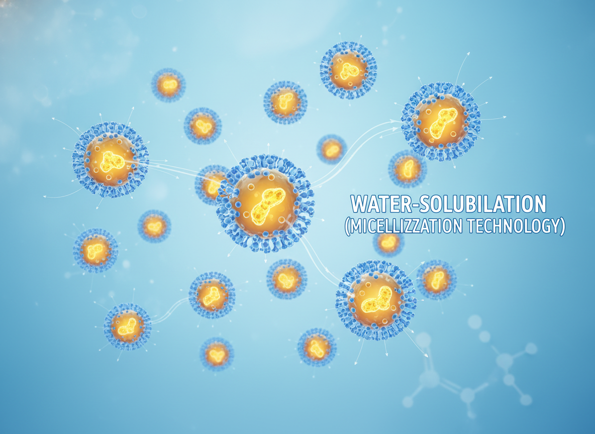 | 미셀화 기술 | 지용성인 커큐민을 수용성 나노 입자로 쪼개 물에도 잘 녹고 흡수가 빠릅니다. |