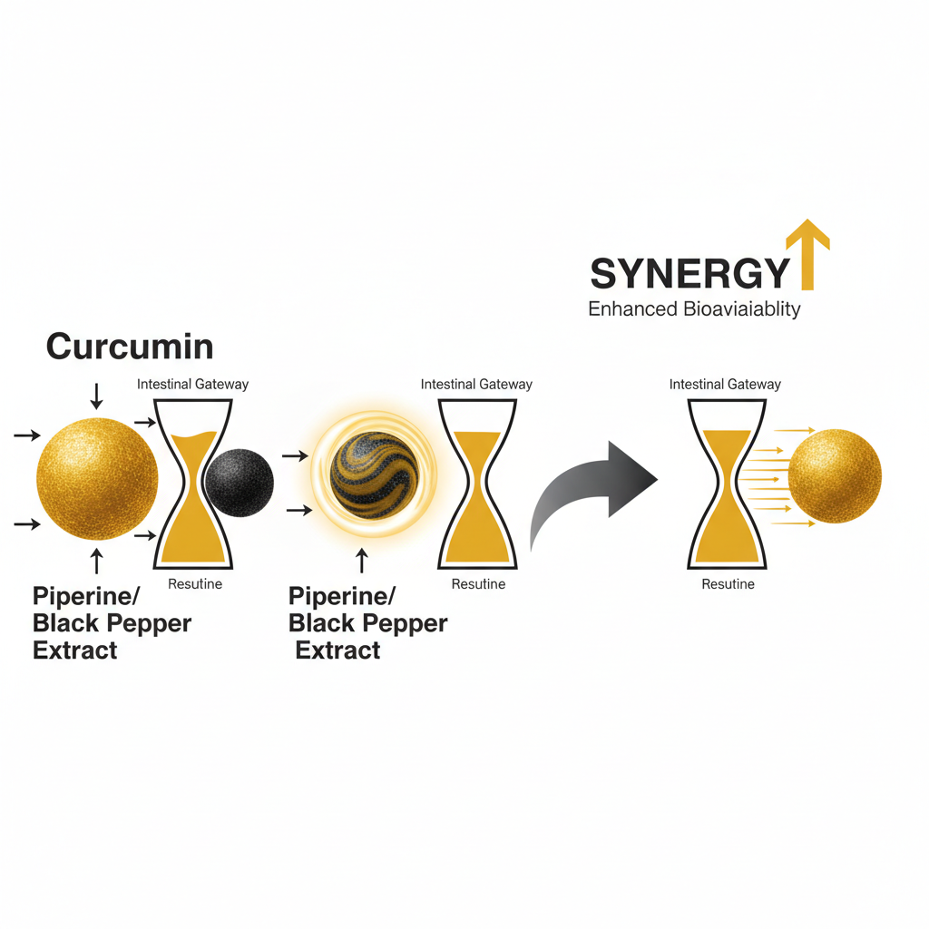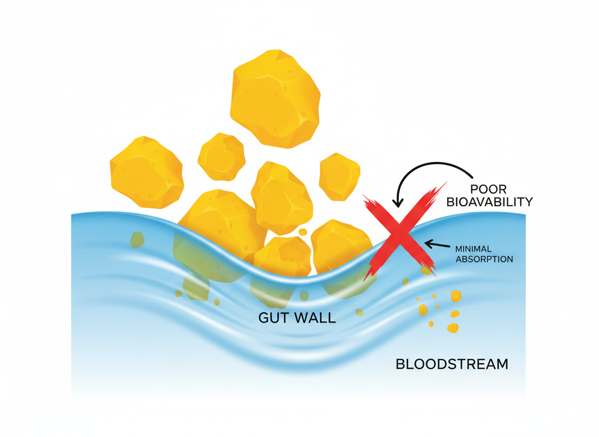 커큐민의 가장 큰 단점은 흡수율이 매우 낮다는 것입니다. 입자가 크고 물에 잘 녹지 않아 섭취해도 금방 몸 밖으로 배출되어 버리죠. 그래서 흡수율을 높이는 기술이 적용된 제품을 고르는 것이 핵심입니다.